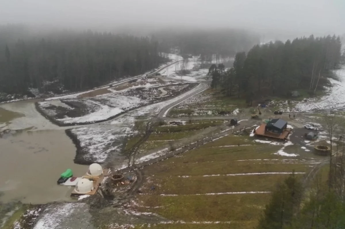 По всей южной границе произведена отсыпка высотой в один метр. В восточной имеются бурт глины, септик, а на отсыпанной части построили два купольных дома и дровяник.